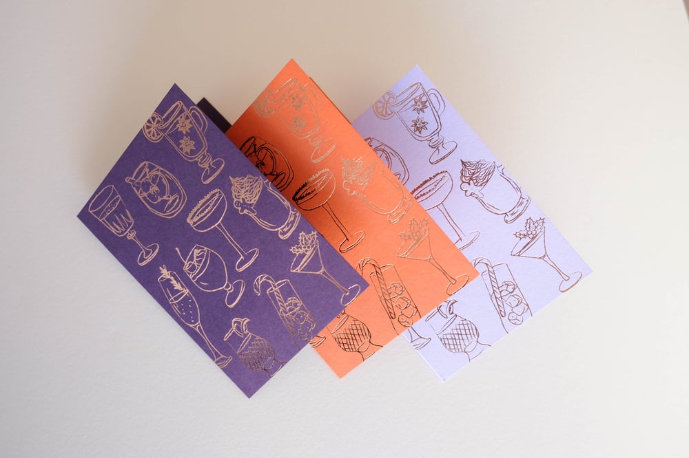The design is hand-drawn then foiled in metallic copper onto GF Smith Colorplan. It's blank inside for your own message and I'd recommend metallic or white pen to write inside!